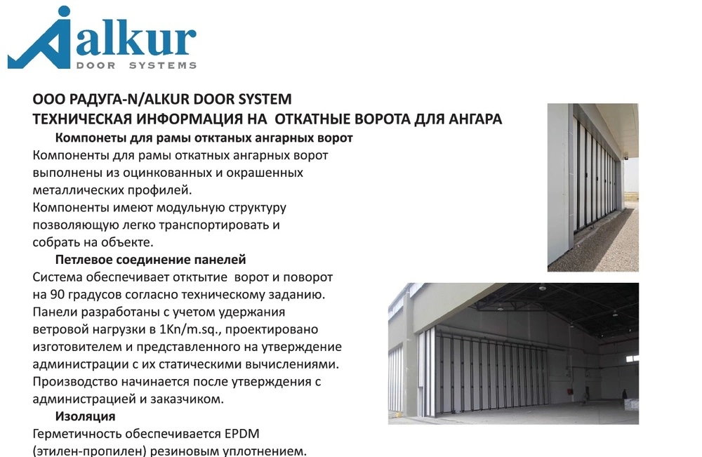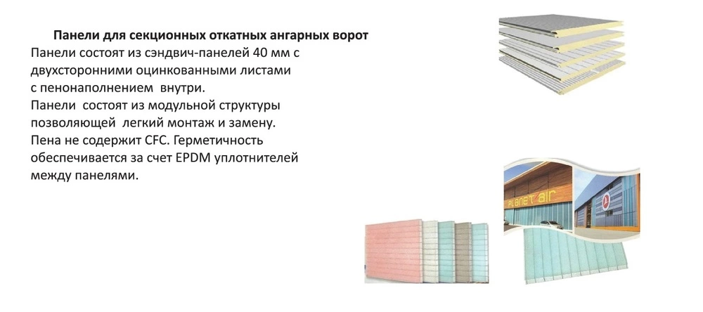 Ангарные ворота являются надежными и могут прослужить достаточно длительное время. Они не боятся влаги, не поддаются окислительным процессам, коррозии, выдерживают низкие и очень высокие температуры не теряя при этом своих свойств и качеств.